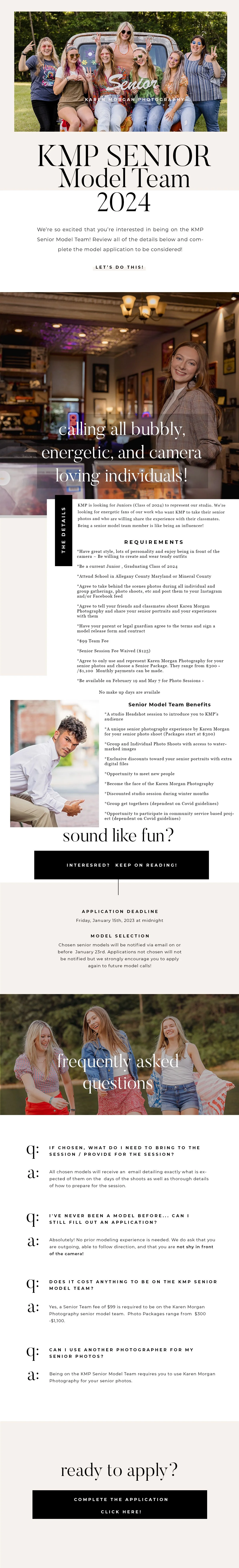 Please Check out the KMP Senior Photo Experience to see what a session with me looks like by clicking the link below.